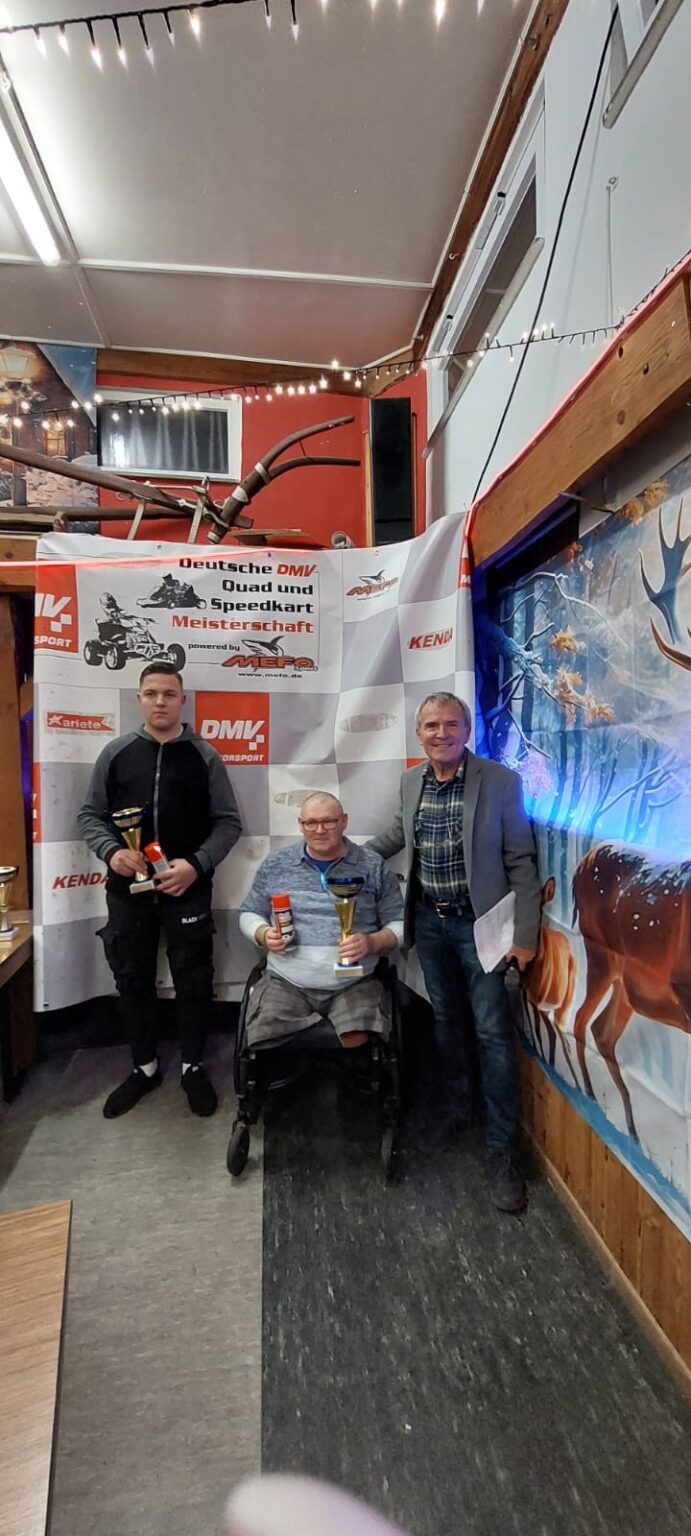 70 Fahrer, Fahrerinnen, Familie, Freunde und Anhang feierten im Berstädter Hof in Wölfersheim-Berstadt fröhlich und ausgelassen die Saison 2025, die Pokale der Meister und Platzierten der Deutschen DMV Quad und Speedkart Meisterschaft – powered by MEFO Sport – wechselten in familiärem Umfeld die Besitzer.